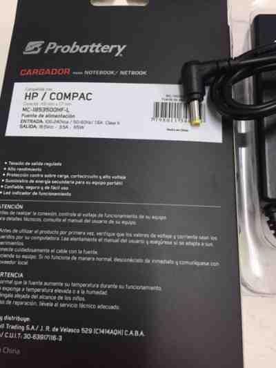 Asunto: Pedido de información sobre CARGADOR NOTEBOOK PROBATTERY 65W / HP PTA CELESTE